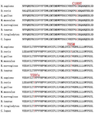 A: The residue of the missense mutation p.C189Y is highly conserved.