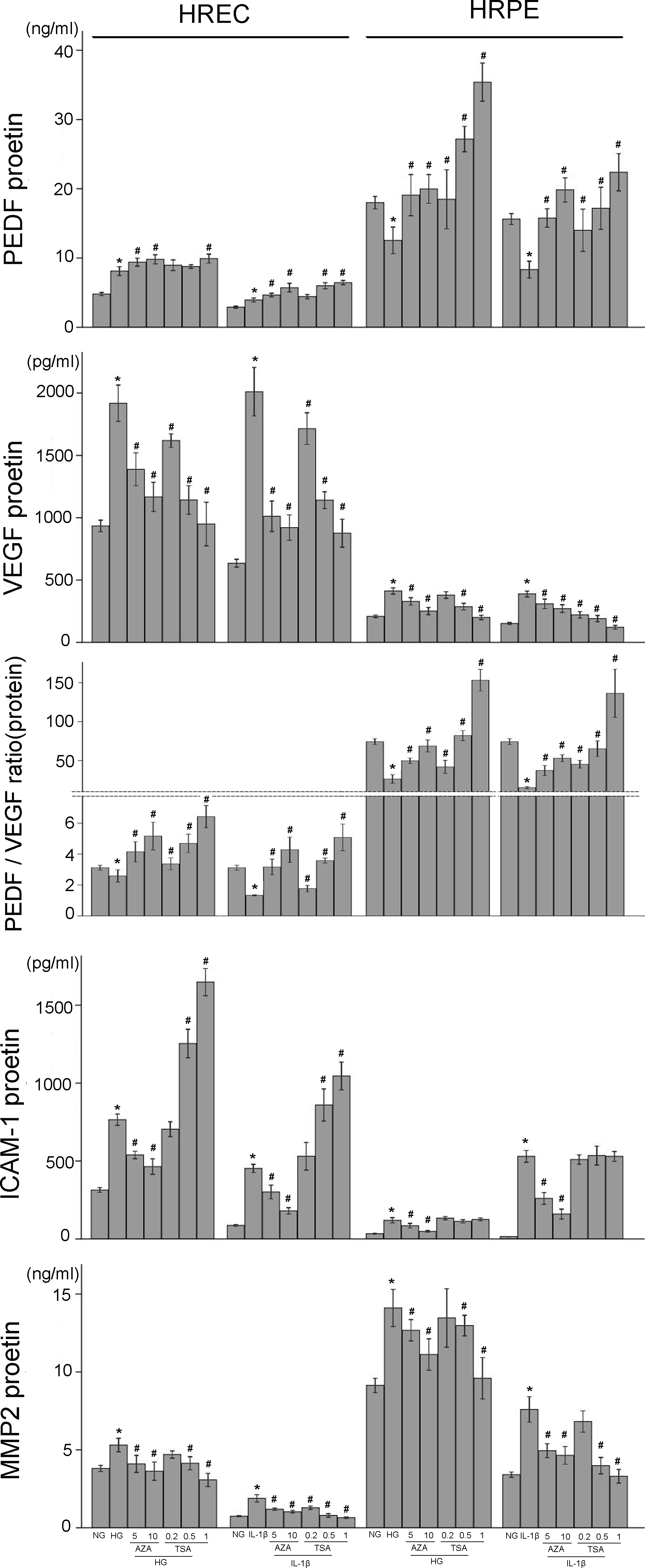 μM, 1 μM). PEDF, VEGF, ICAM-1, IL-1β, and matrix metalloproteinase 2 (MMP2) secretions and the PEDF/VEGF protein ratio were