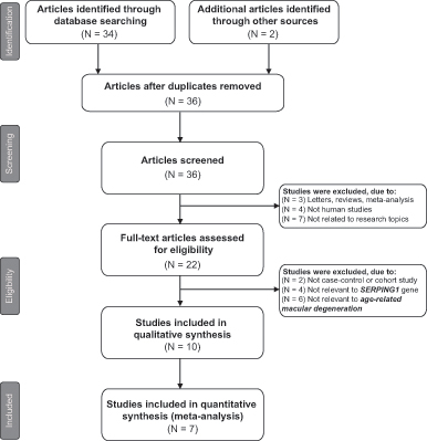 Flowchart of the literature search and study selection. Seven case-control studies were included in the meta-analysis.