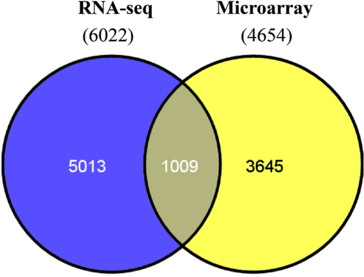 Figure 3. Number of differentially expressed genes shared between our RNA-Seq results and microarray analysis. In total, 1,009 differentially