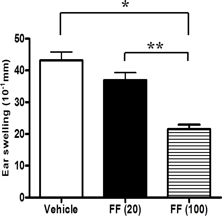 a high dose of fenofibrate exhibited significant inhibition of ear swelling 48 h after S-Ag peptide challenge compared with