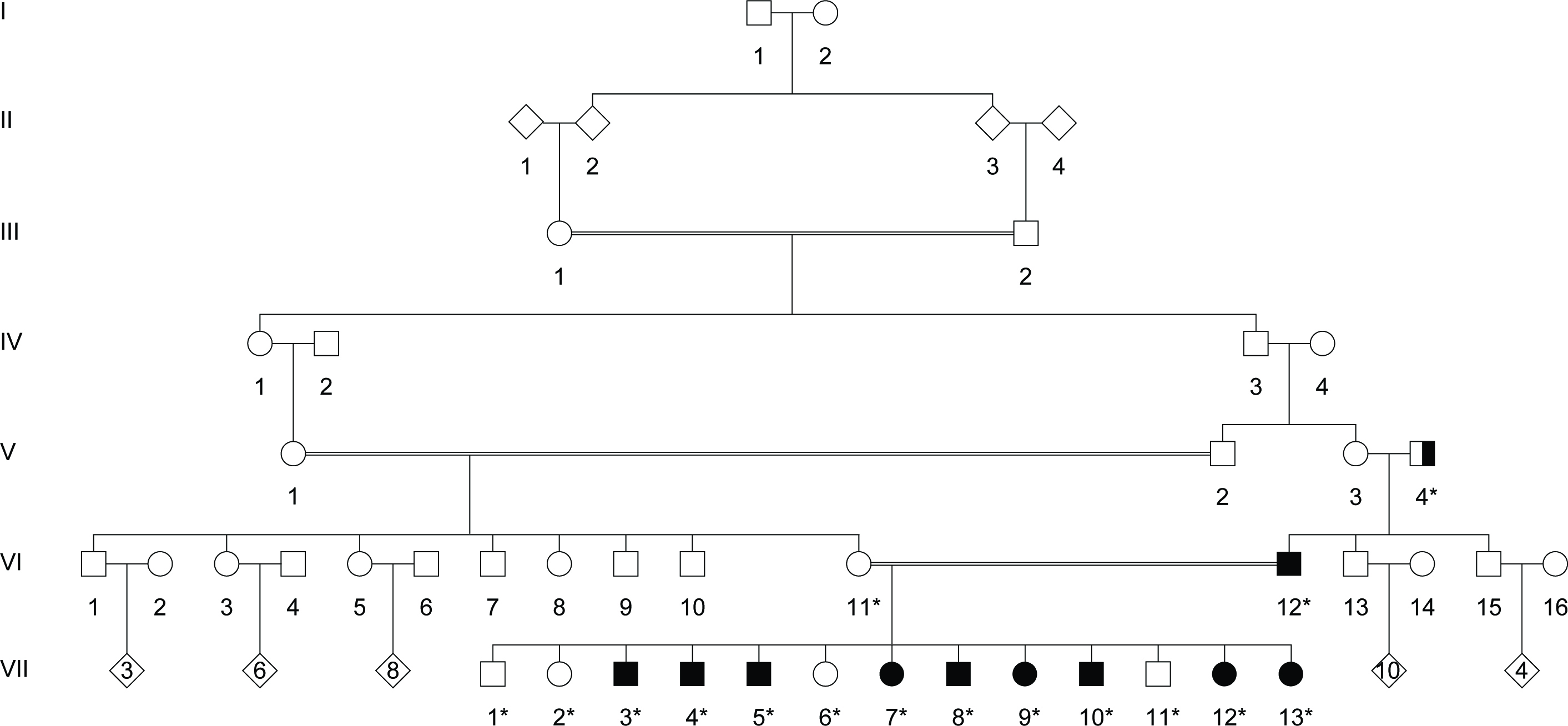 (individual V:3) who was unavailable for genotyping. While it is reasonable to presume that the older members of the pedigree