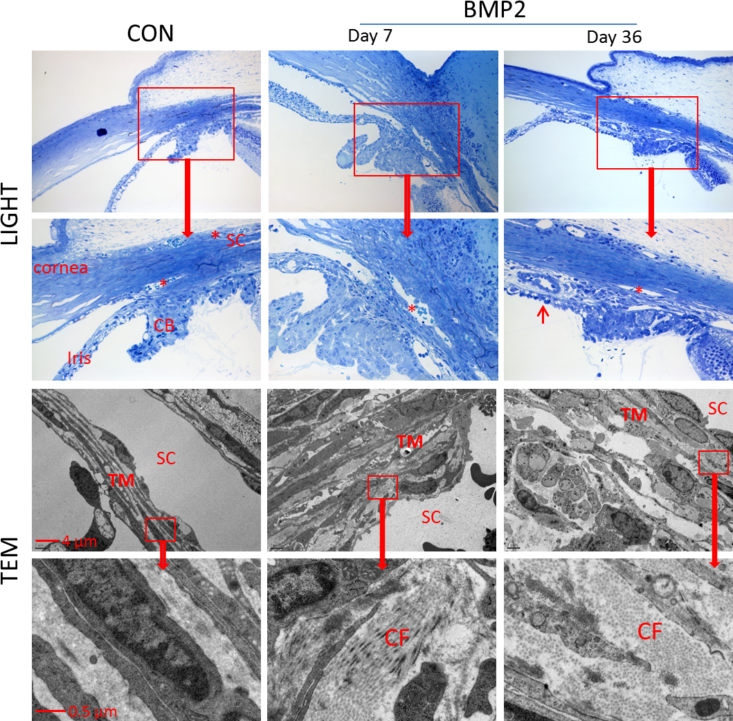 and anterior segments (four quadrants) were processed for Epon embedding and sectioning (0.5 µm) at 7 and 36 days after Ad.cmv.BMP2