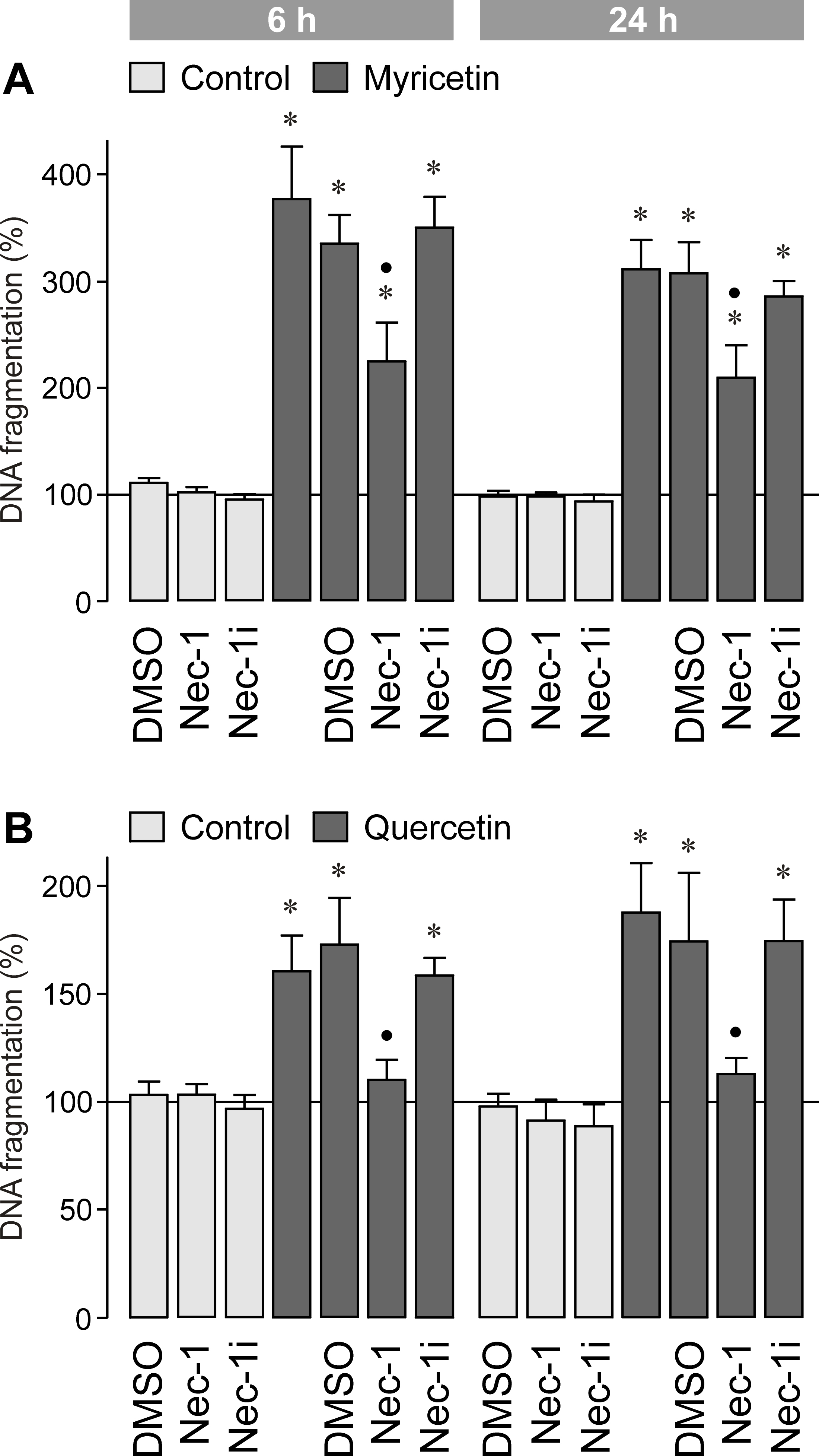 µM; A) and quercetin (200 µM; B), respectively. As negative control, inactive necrostatin-1 (Nec-1i; 30 µM) was tested. The vehicle control was made with