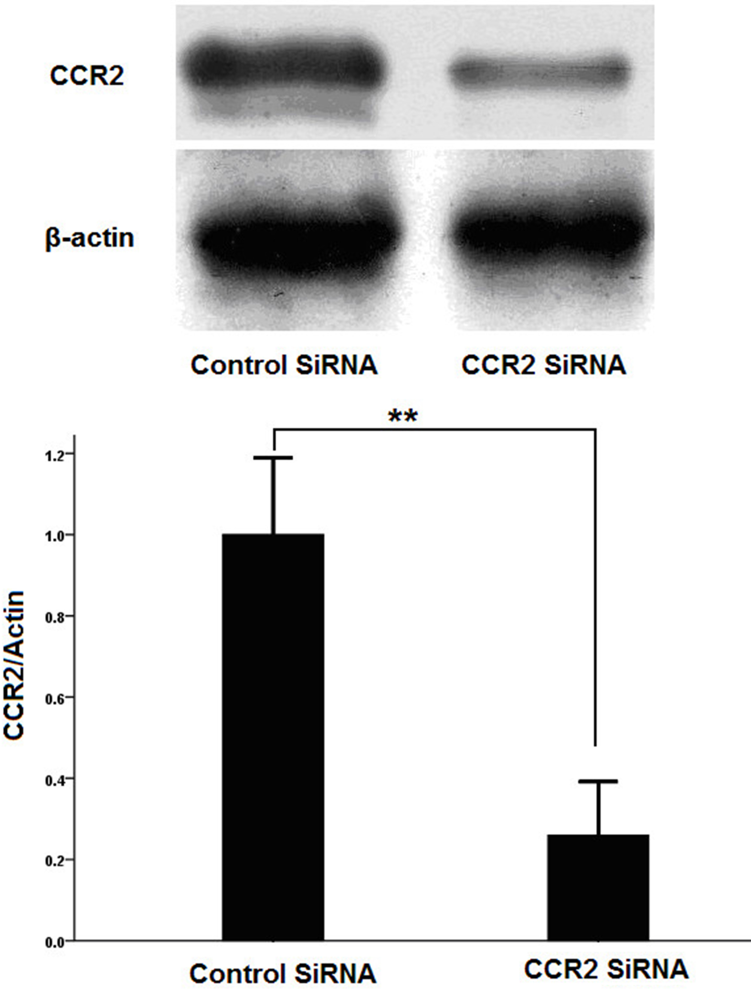 were treated with specific siRNA to knock down the expression of CCR2. Representative CCR2 knockdown was identified with western