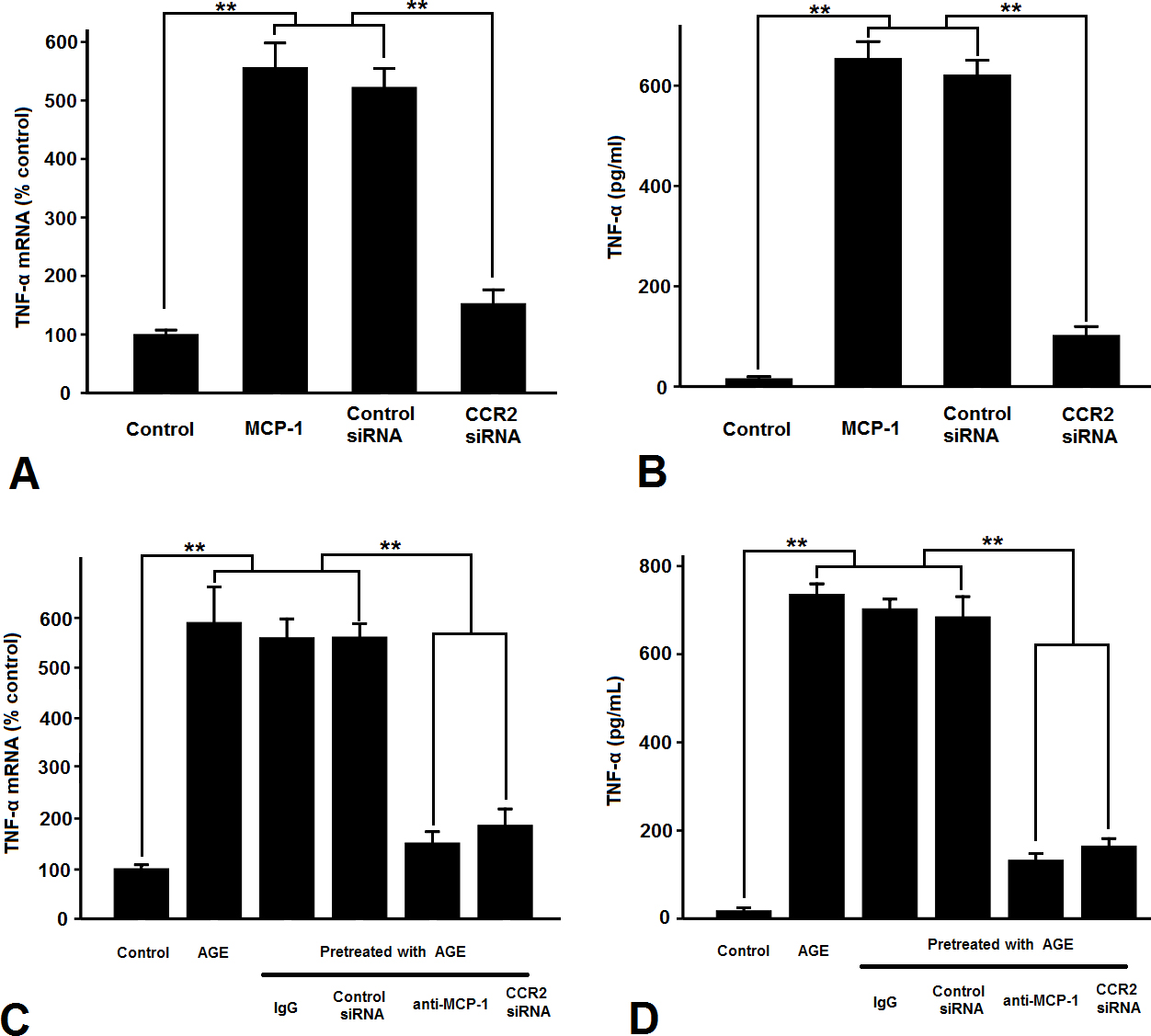 system. In addition, TNF-α mRNA expression was reduced when the MCP-1 blocking peptide and CCR2 siRNA were used. However,