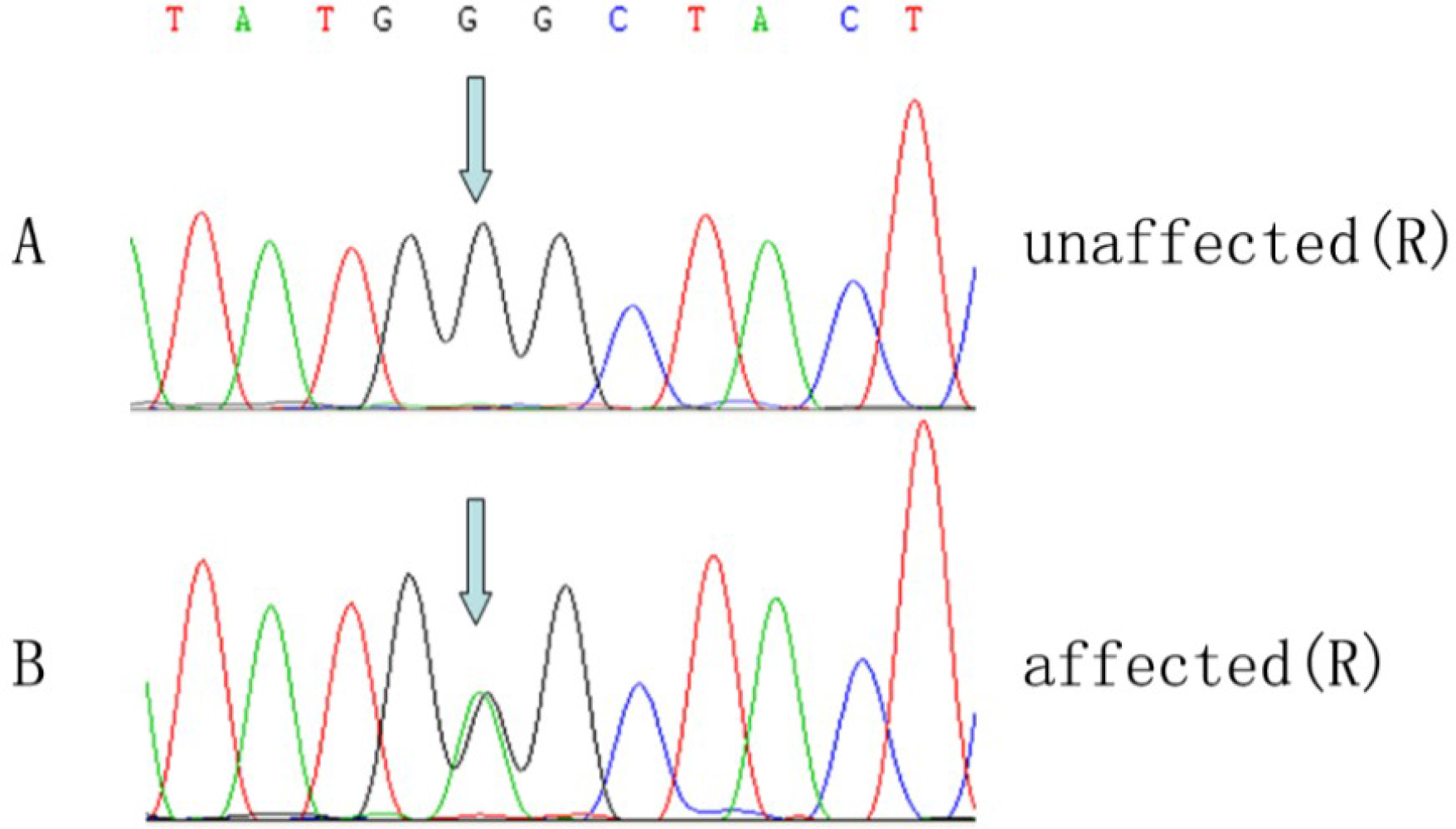 : A novel heterozygous missense mutation c.3928G>A, p.1301Gly>Ser in exon 31 was identified in all affected family members.
