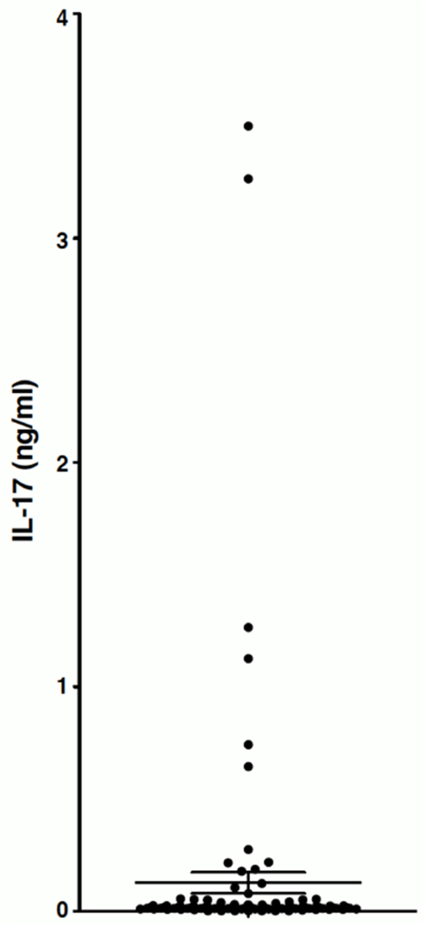 T cell clones (n≥107) were stimulated with beads coated with anti-CD3 and anti-CD28 antibodies. The amount of IL-17 in the