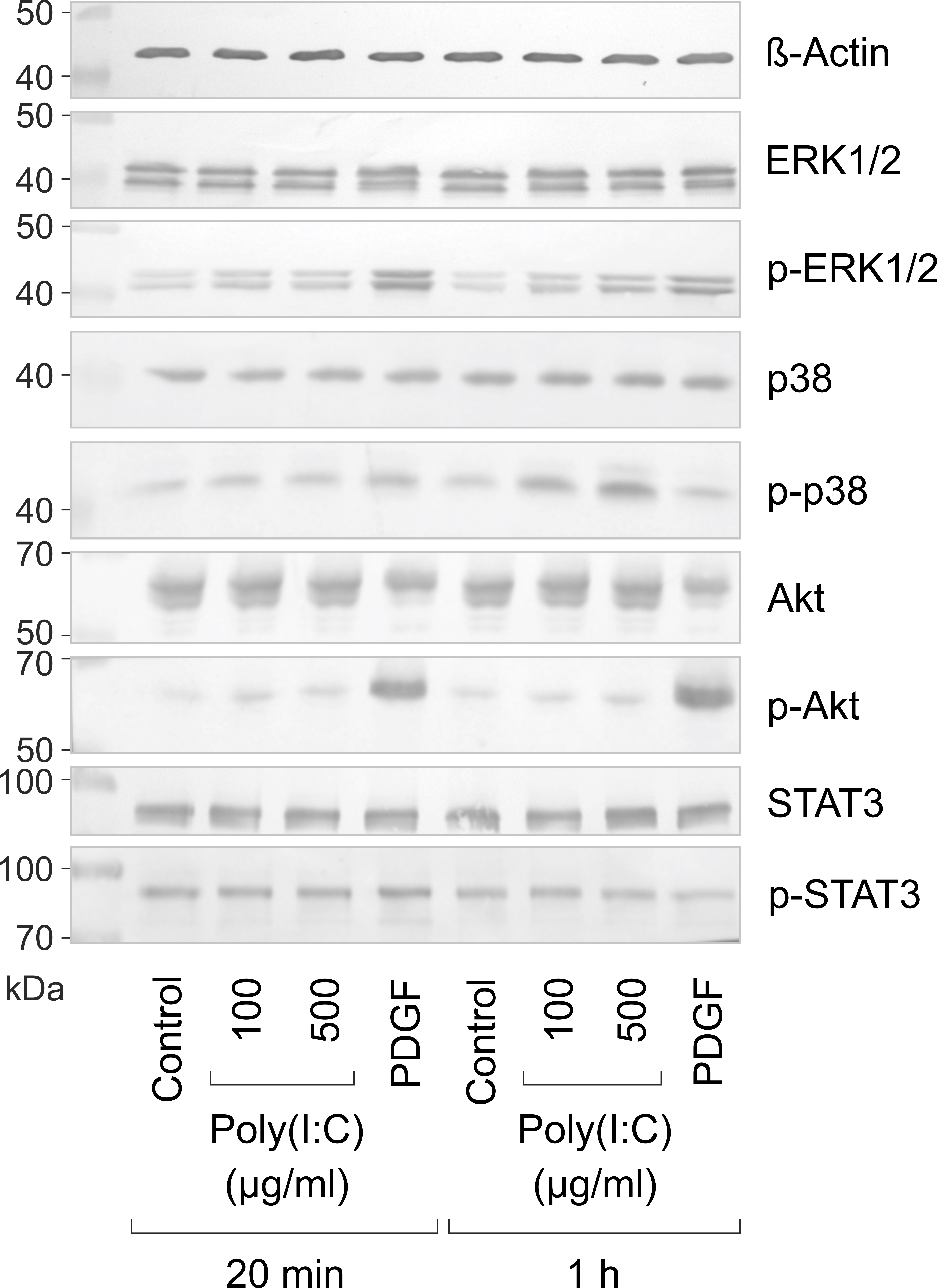cultures were stimulated for 20 min and 1 h, respectively, with 100 and 500 µg/ml of poly(I:C). PDGF (10 ng/ml) was used as