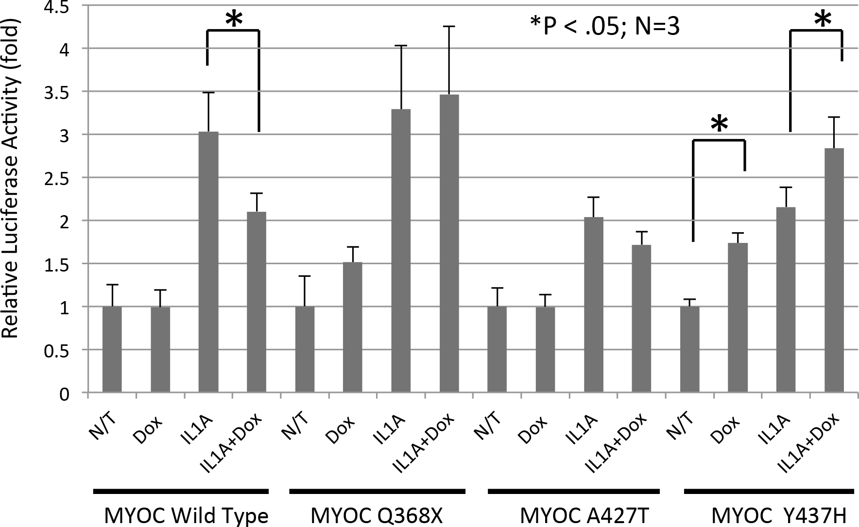 or mutant MYOC lentivirus expression constructs were transfected with the IL8-luc expression construct or the renilla expression