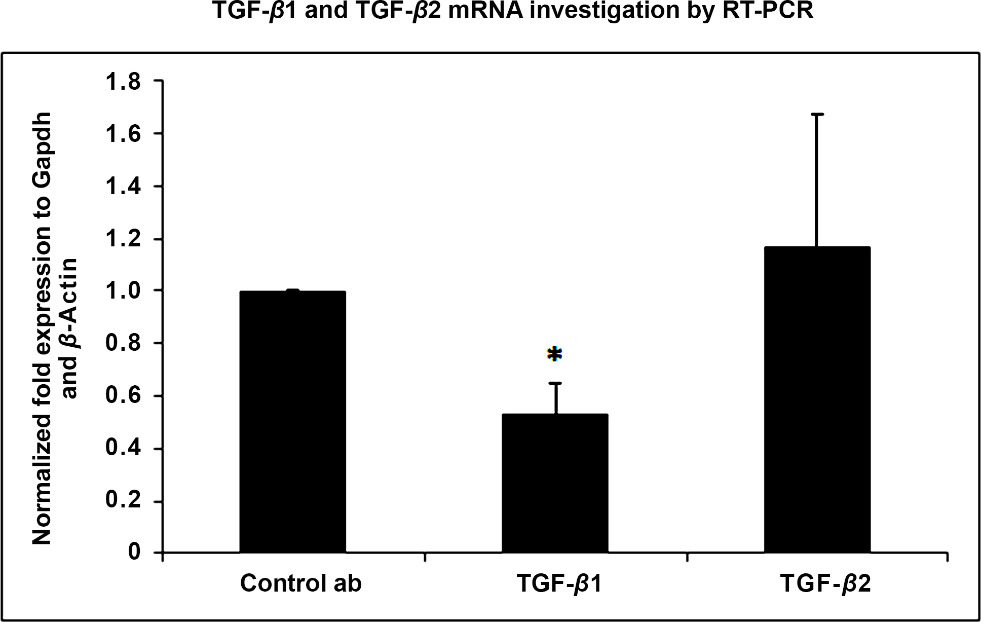 0.5 mg/ml demonstrated significant decrease in the mRNA level of TGF-β1 (p<0.05; n=3). However no significant changes distinguished