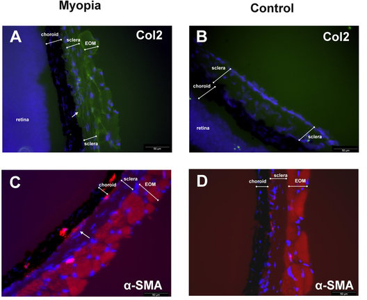 Figure 6. Immunostaining for the Col2 expression in the scleras of FDM mouse eyes on day 21 following induction. Col2 was more highly