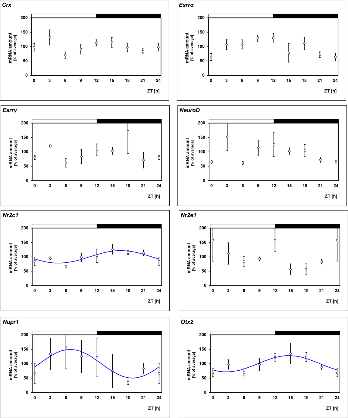 Figure 1. Twenty-four-hour profiling of various nuclear orphan receptors in preparations of the whole rat retina under 12 h:12 h light-dark