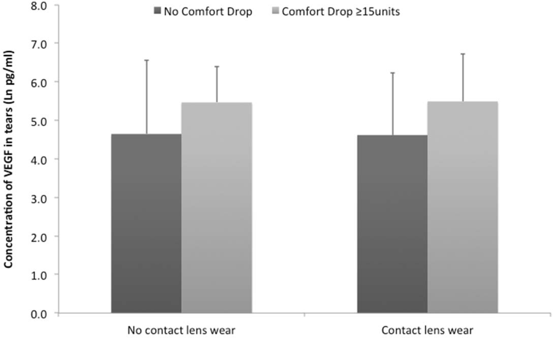 Figure 1. Differences in the vascular endothelial growth factor (VEGF) concentration in tears of symptomatic and asymptomatic participants.