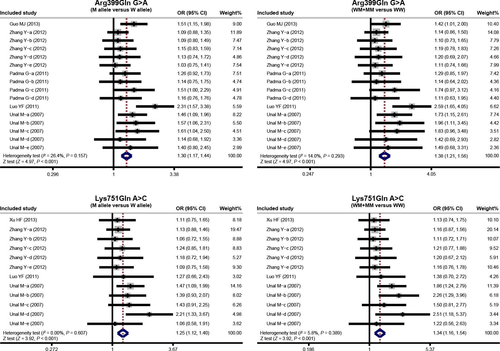 Forest plots for the relationships of