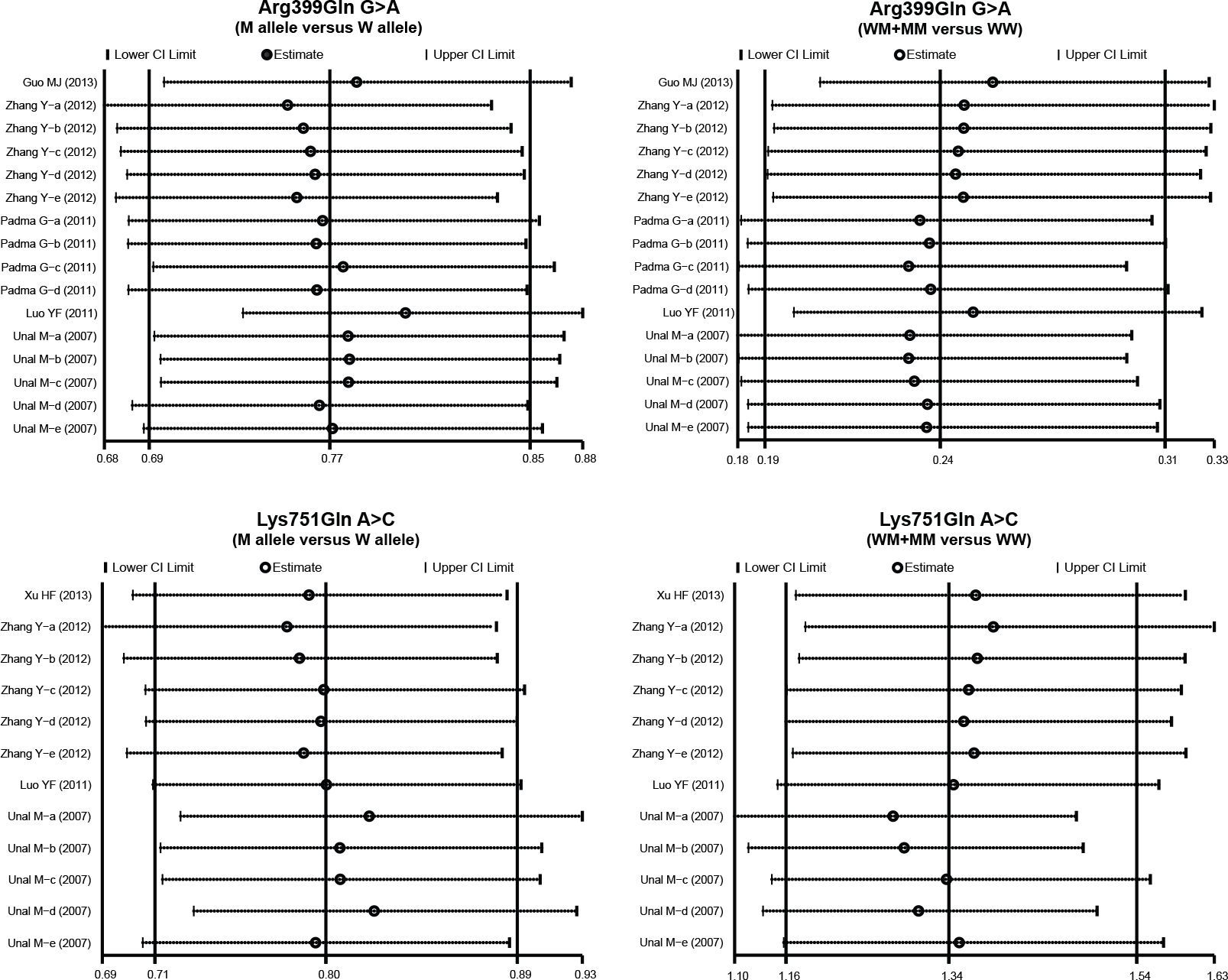 Sensitivity analysis of the summary odds ratio coefficients on the relationships of