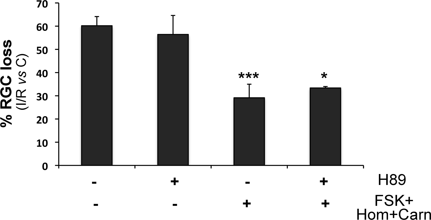 with forskolin/homotaurine/L-carnosine. Protein kinase A (PKA) inhibitor H89 was given intravitreally 75 min before ischemia