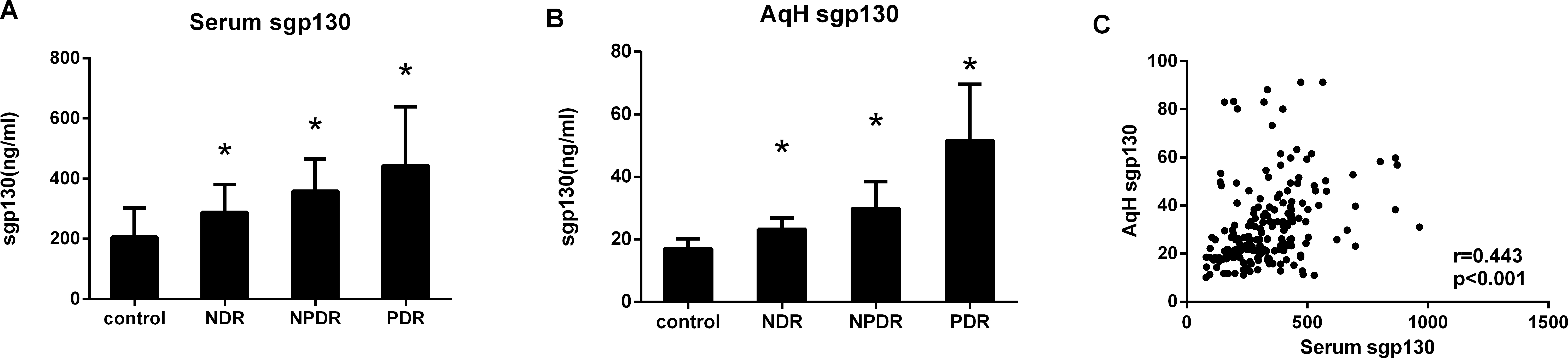 Figure 1. Concentrations of sgp130 in serum and AqH from patients with T2DM and non-diabetic controls. Soluble gp130 (sgp130) was measured