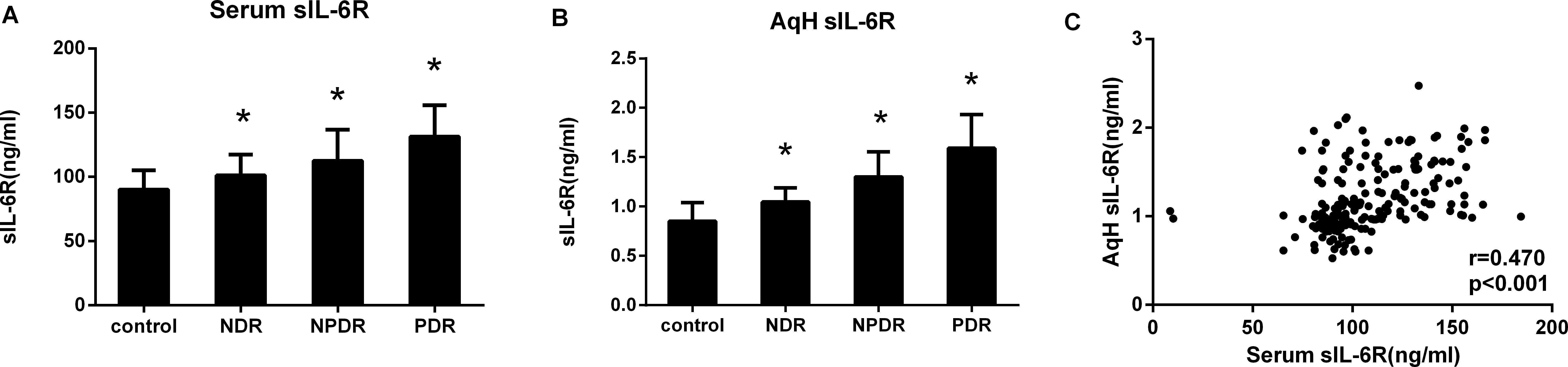 multiple comparison test. The relationship between sIL-6R in the AqH and serum was tested, when matched samples were available,