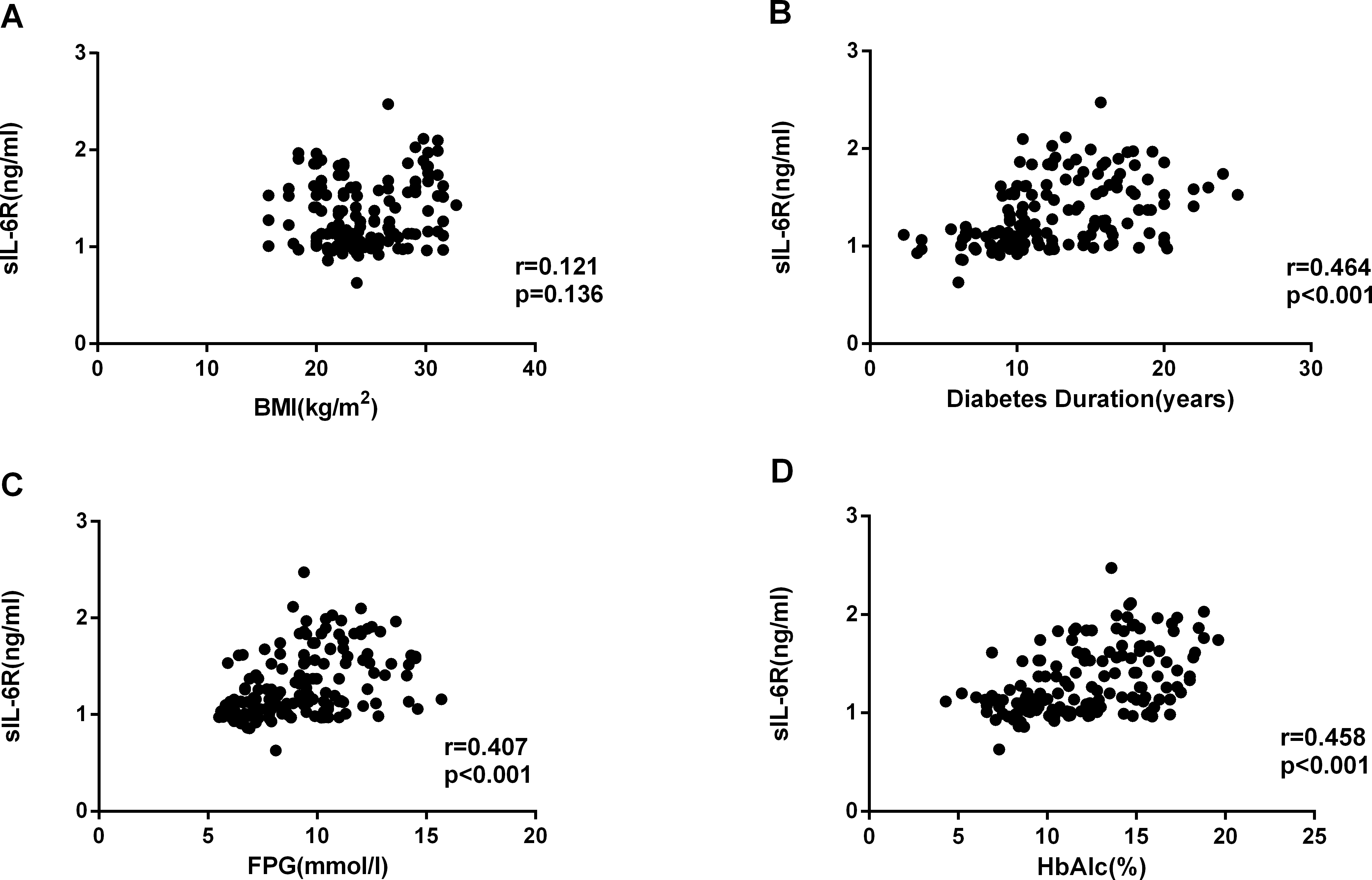 Figure 7. Correlation analysis showed that sIL-6R concentrations in AqH were positively correlated with the BMI (r = 0.121, p = 0.136),