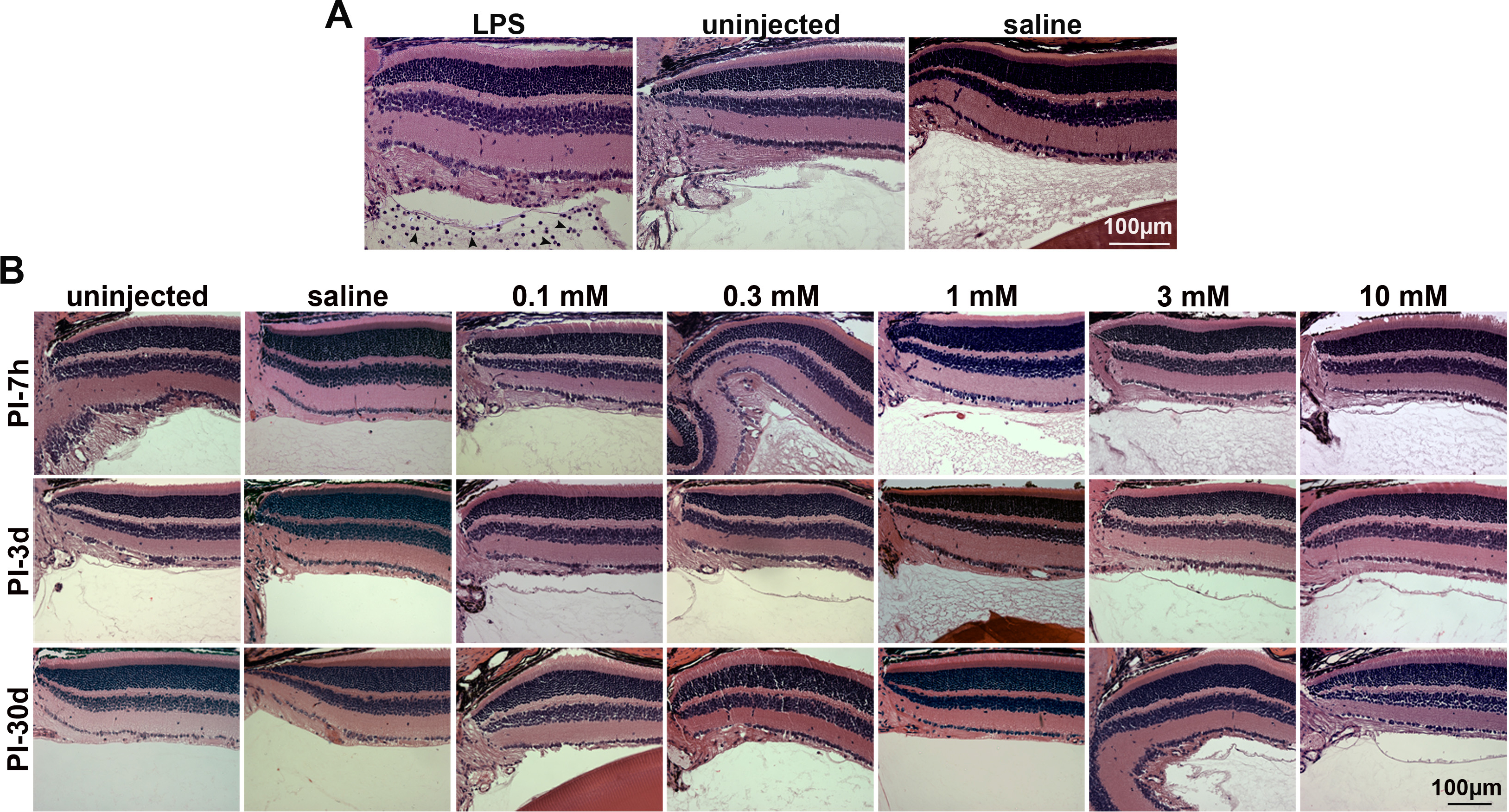 the uninjected eyes. Representatives from each group and only the PI7 h and the PI3 and PI30 day are shown. n = 3–6 eyes per