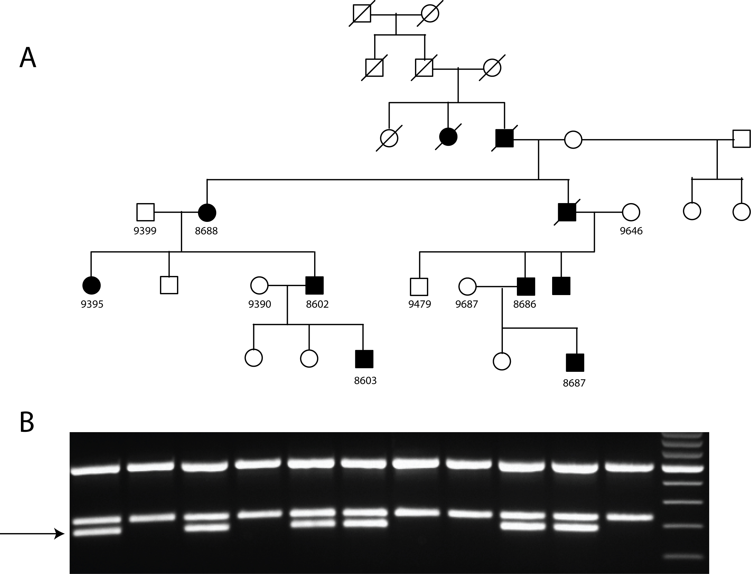 and separated on an agarose gel. Results from each family member are in the lane directly underneath their symbol in the pedigree.