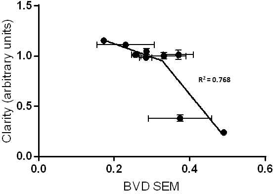 of the BVD SEM. The results revealed that there was no linear relation between normalized clarity and the back vertex distance