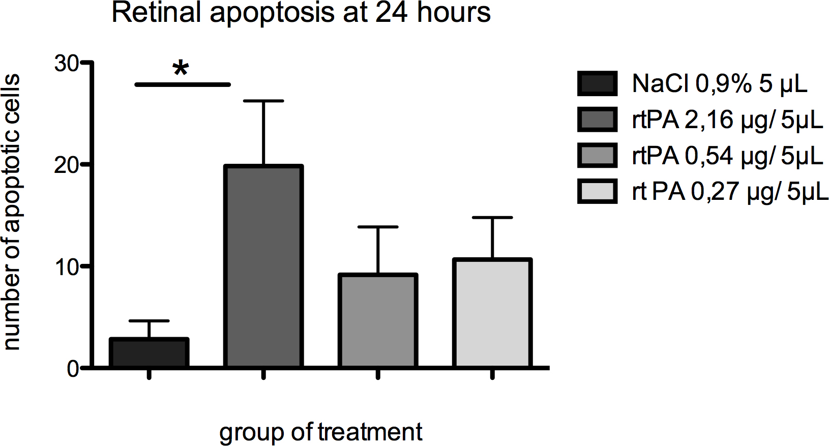 Figure 1. Number of apoptotic retinal ganglion cells in flatmounted healthy retinas 24 h after intravitreal administration of rtPA (2.16,
