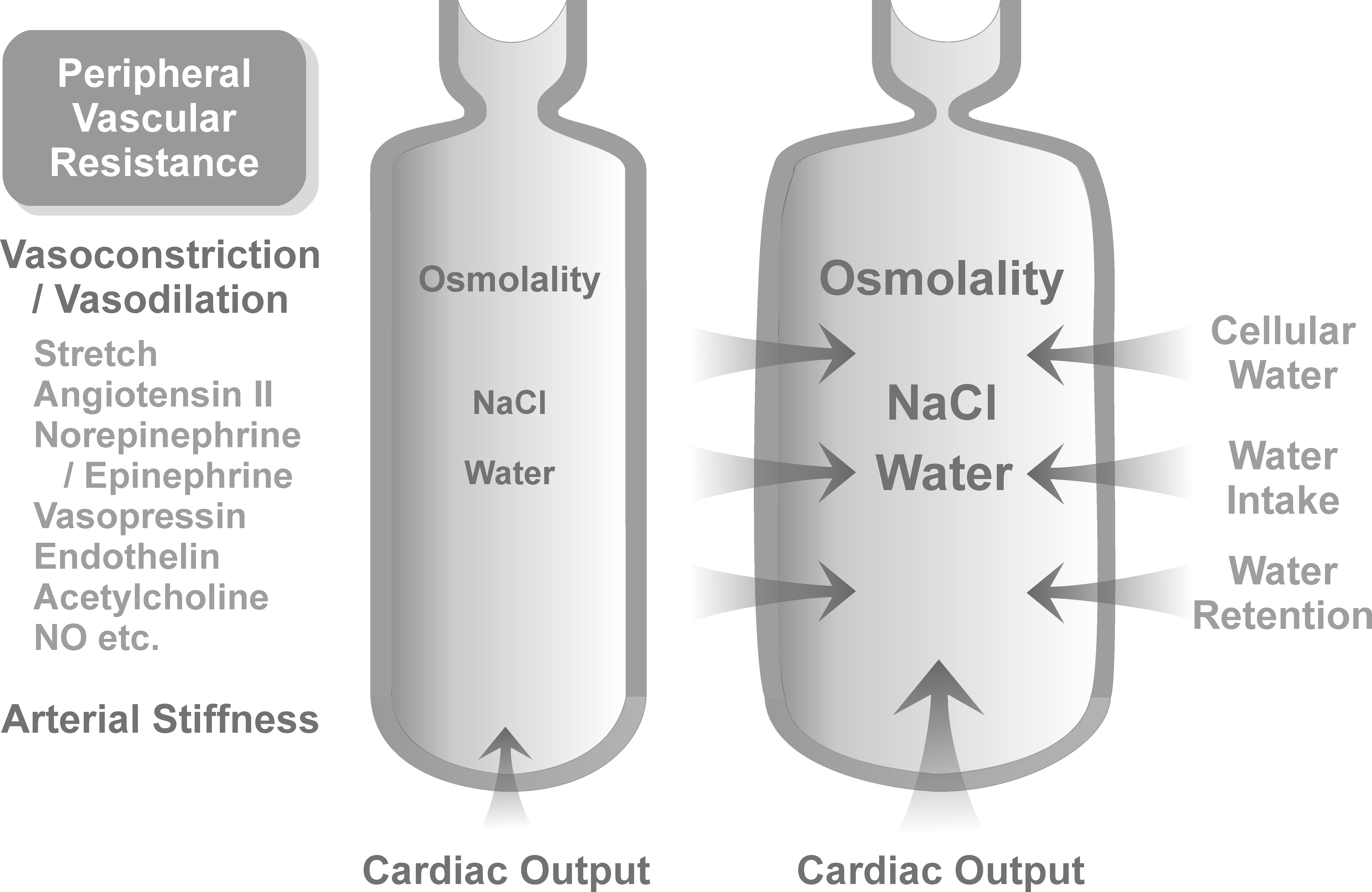 osmolality increases with age. The scheme shows the transition between an artery and an arteriole that controls tissue perfusion.