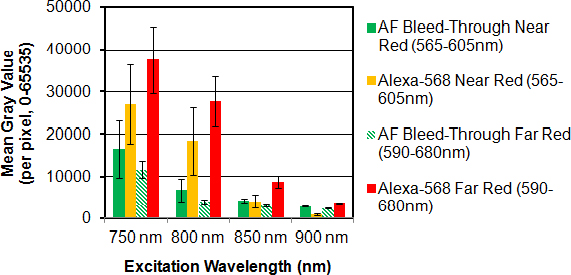 (AF) bleed-through. Alexa-568-to-AF bleed-through mean gray value ratios decreased with increasing excitation wavelength (800