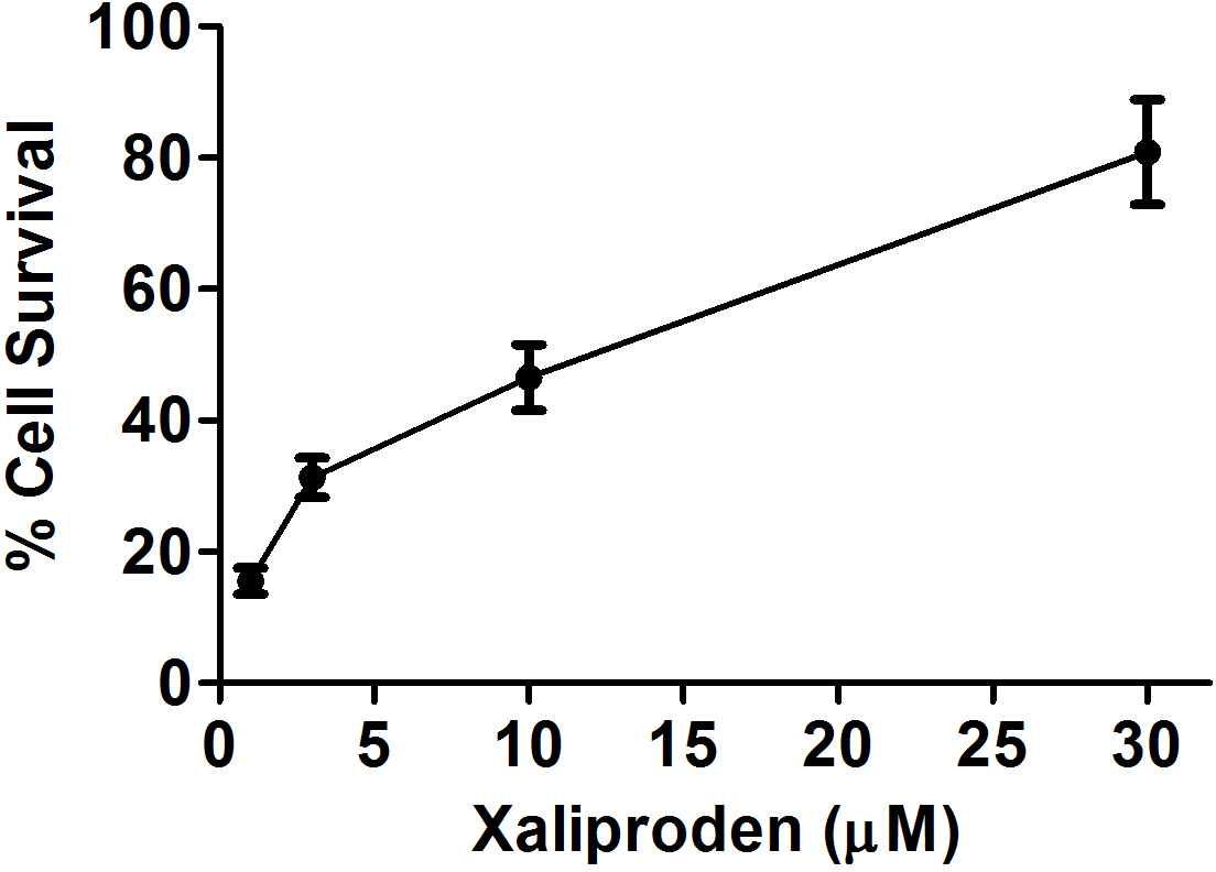 Increasing amounts of xaliproden were added as indicated, and the cells were incubated for 24 h. Cells were stained with Cell