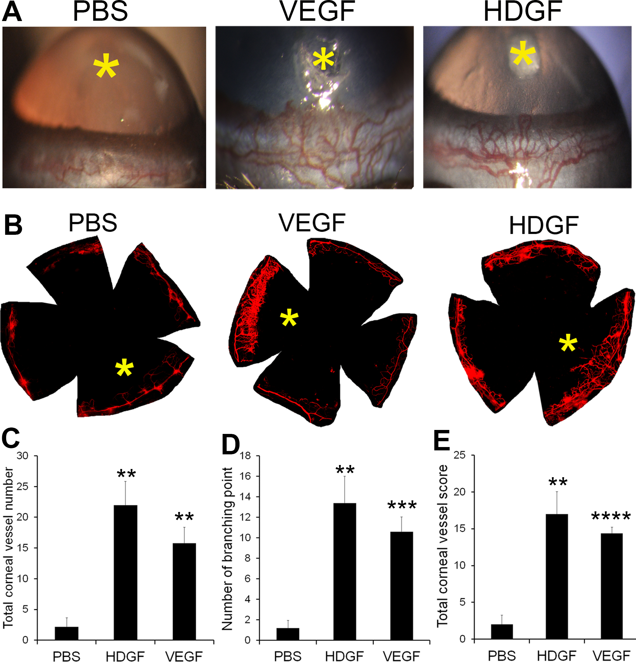 factor (HDGF; 1 µg/µl), vascular endothelial growth factor (VEGF; 100 ng/µl), or PBS were implanted in corneal pockets to