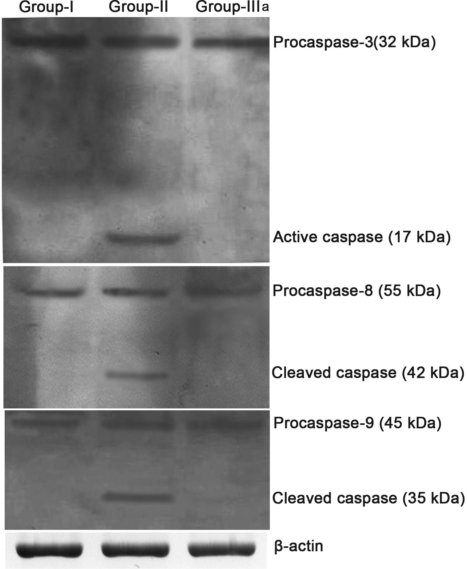 staining intensity of some apoptotic cascade proteins in the three groups of lenses. Groups of lenses; Group I: Normal lenses