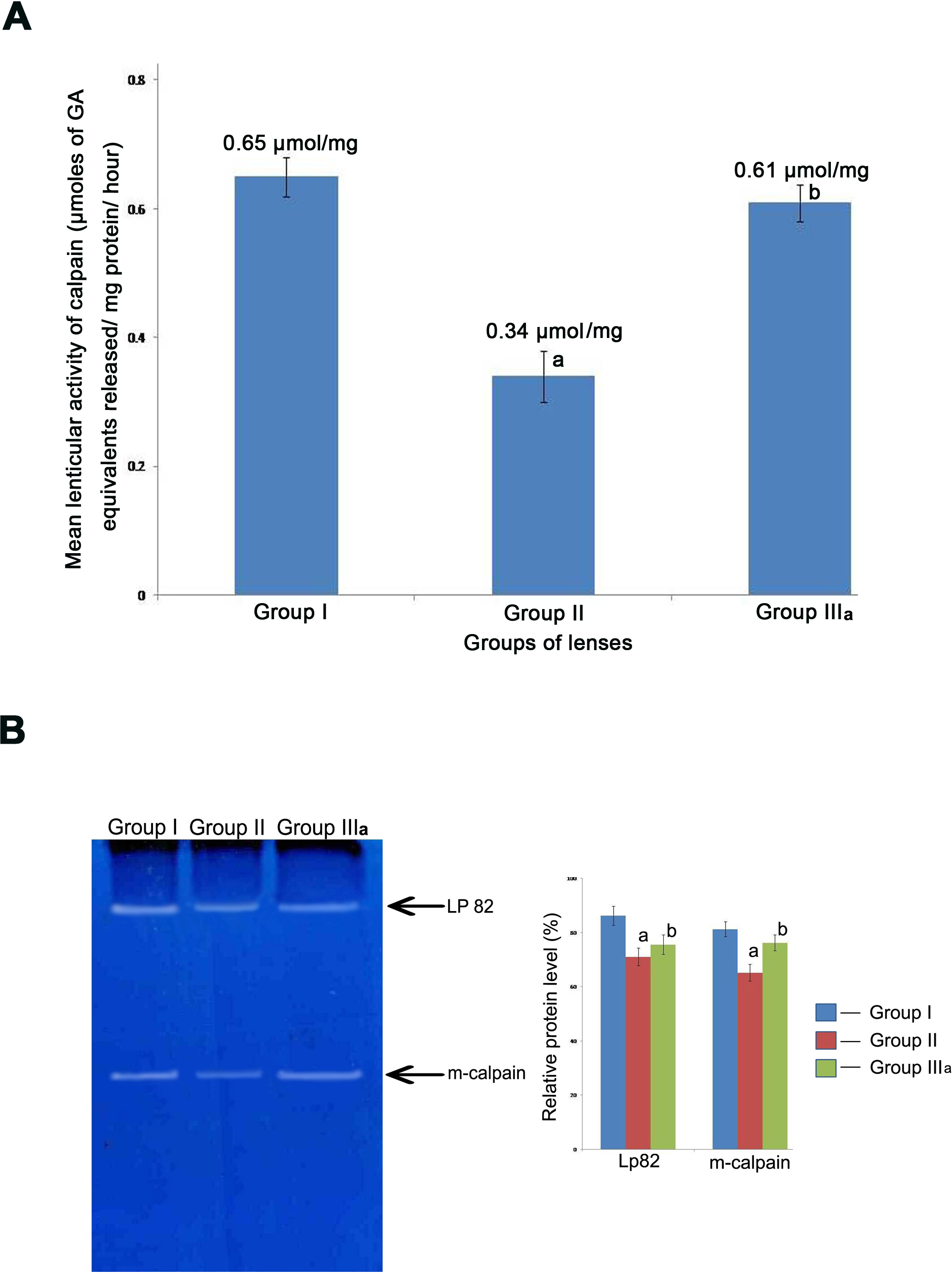 activity. A: Mean lenticular activity of calpain. Groups of lenses; Group I: Normal lenses incubated in Dulbecco’s modified Eagle’s medium