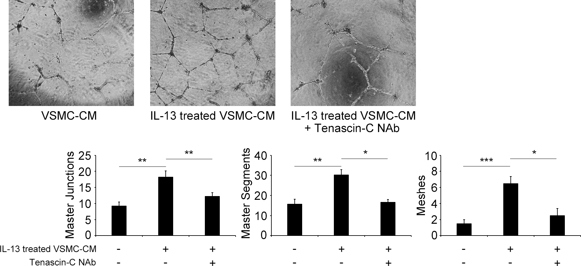with or without IL-13 (2 ng/ml) and treated with or without tenascin-C neutralizing antibody (NAb; 50 μg/ml). The network