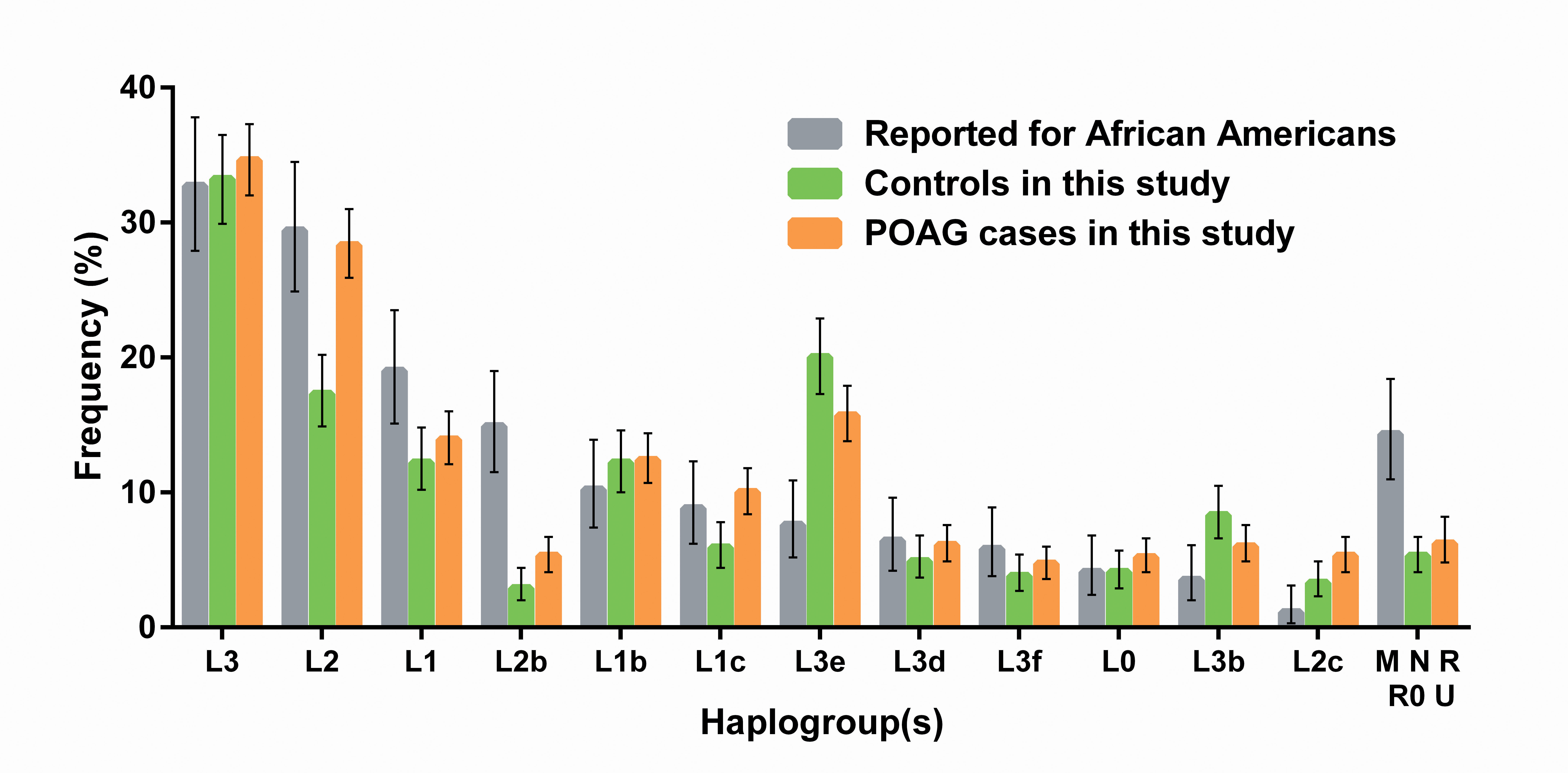 Figure 3. The distribution of major mtDNA haplogroups inferred for the POAAGG study population is consistent with African-American ancestry.