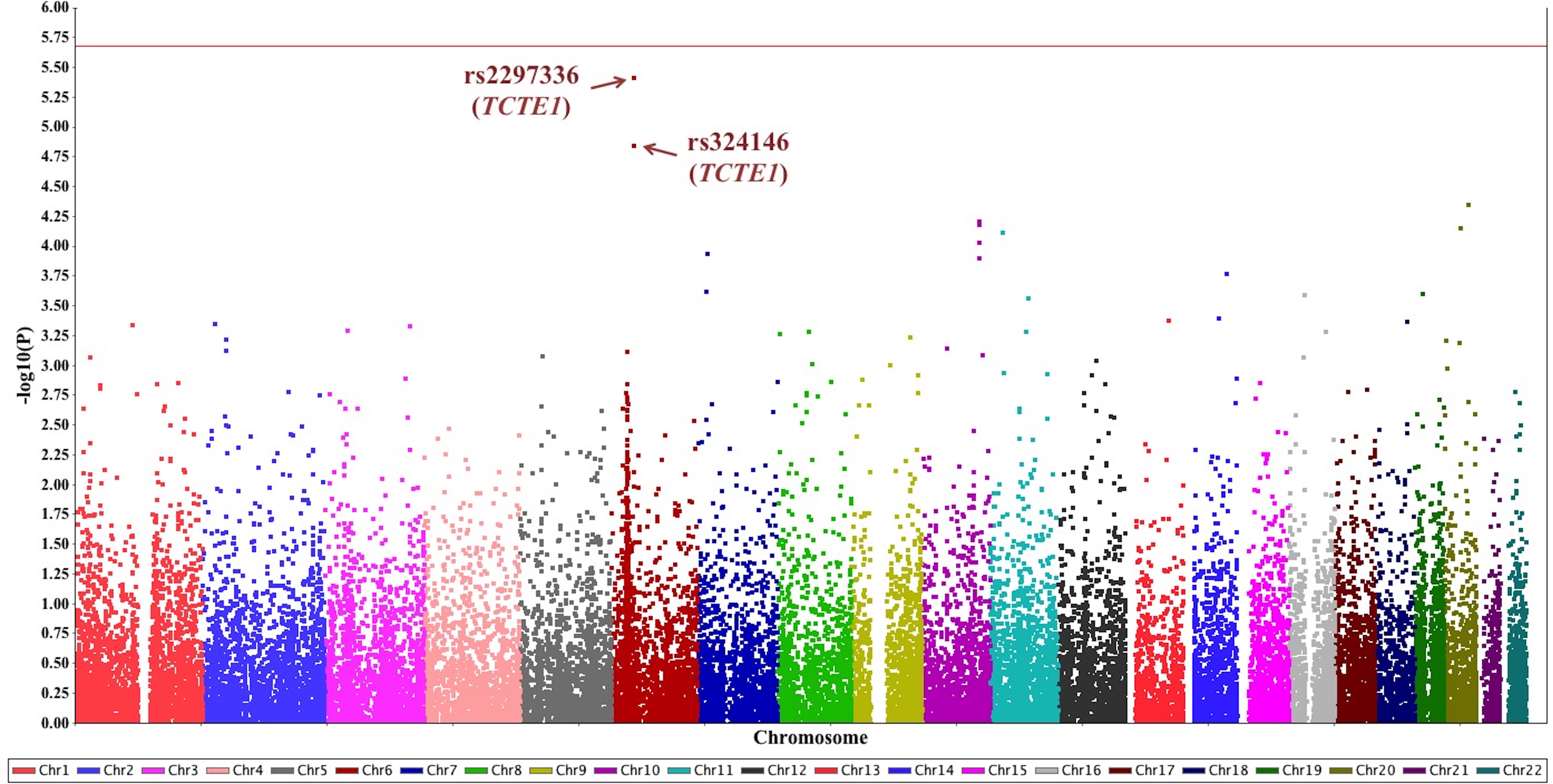 TCTE1 gene region at 6p21.1: rs2297336 (p = 3.7 ×10
