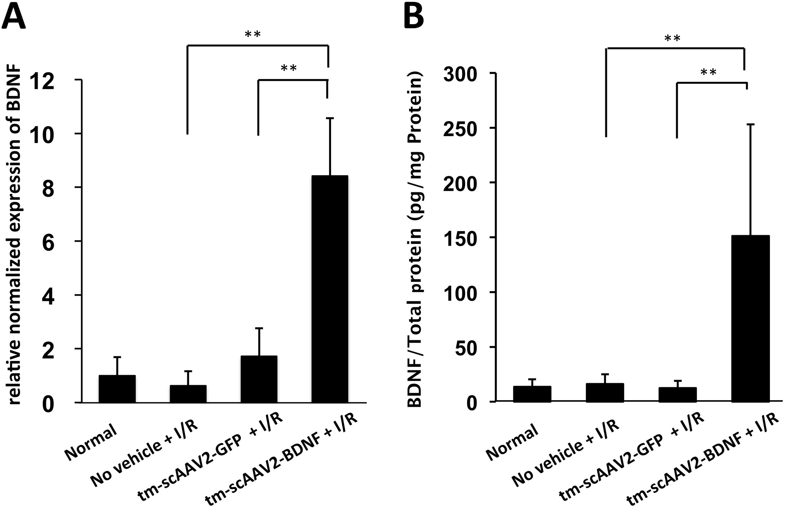 virus type 2 vector encoding BDNF (tm-scAAV2-BDNF). n = 6 in each group. Bars depict means ± standard deviation (SD).