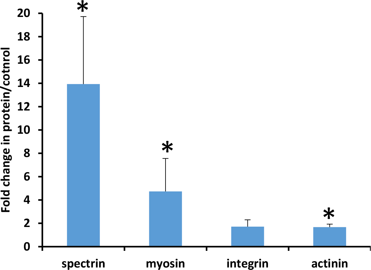 Figure 1. Protein expression changes after 1 week of experimental glaucoma. Immunoblot intensity ratios of experimental glaucoma at