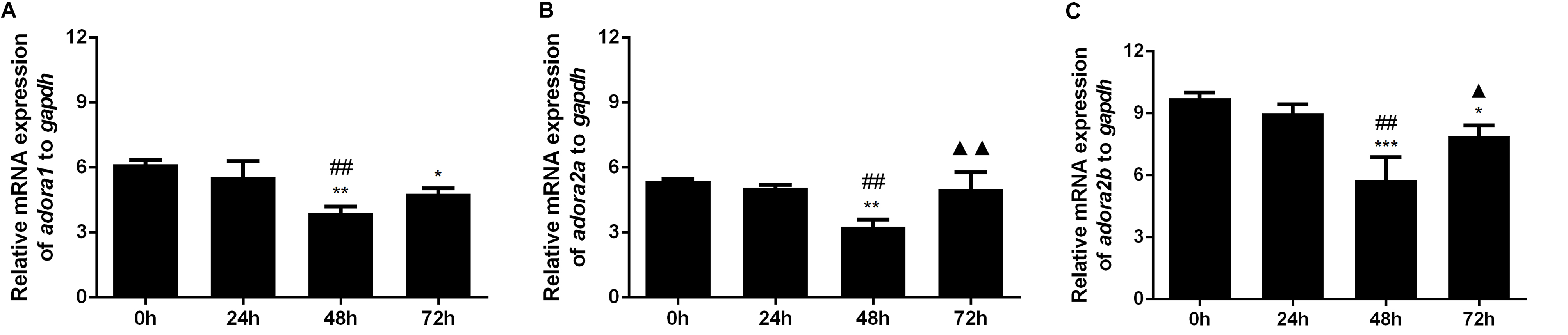 compared with 0 h; ## p<0.01 compared with 24 h; ▲ p<0.05 and ▲▲ p<0.01 compared with 48 h.