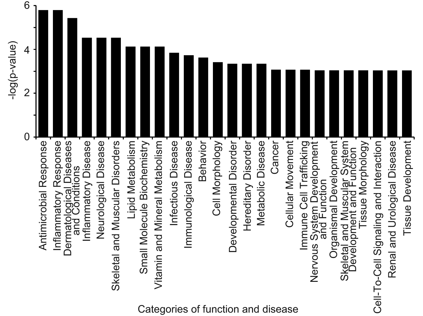 Figure 1. The significantly affected canonical pathways altered in the lens epithelial cells (LECs) upon dedicator of cytokinesis 5