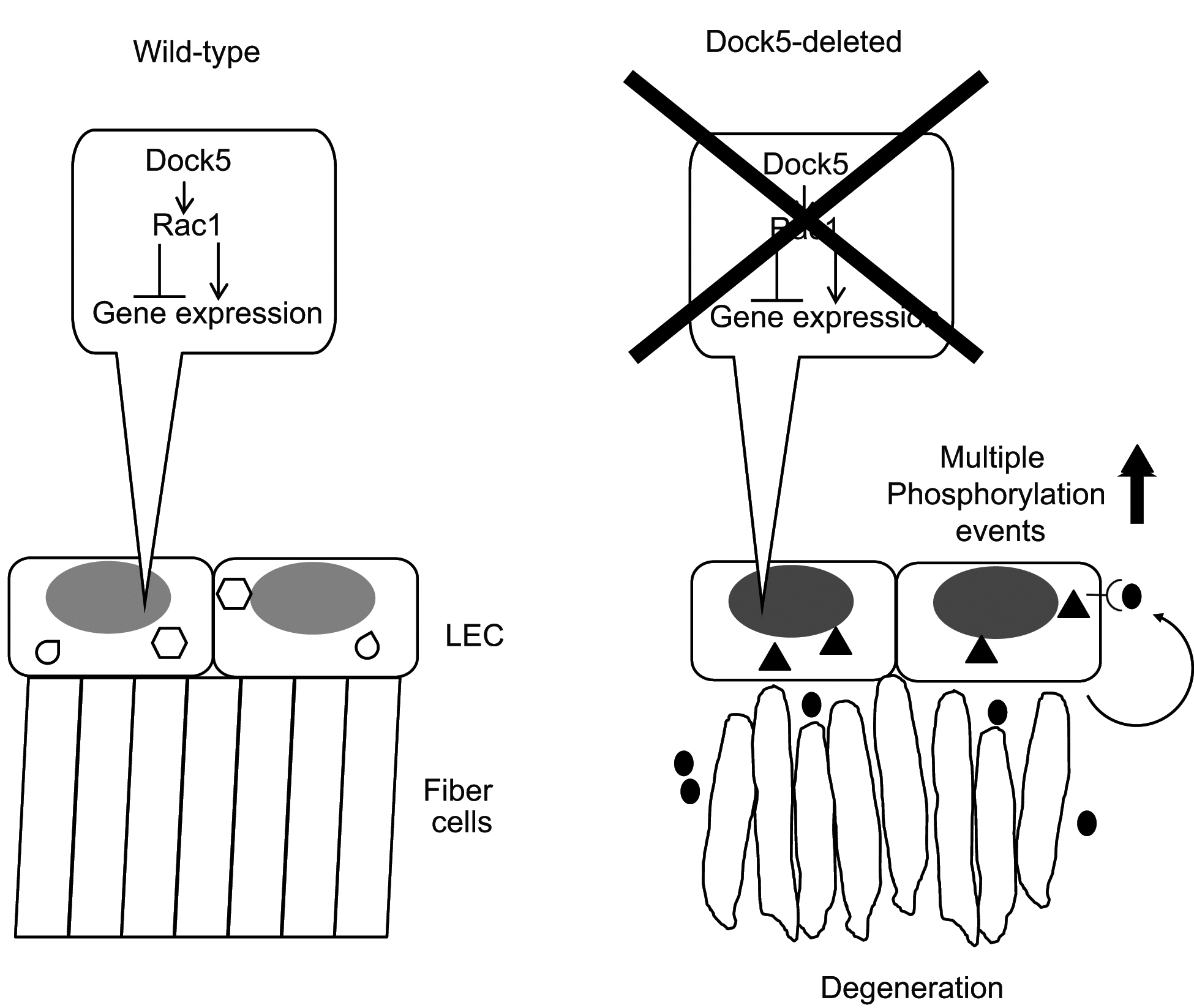 Working model with dedicator of cytokinesis 5 (Dock5) depletion/inhibition.