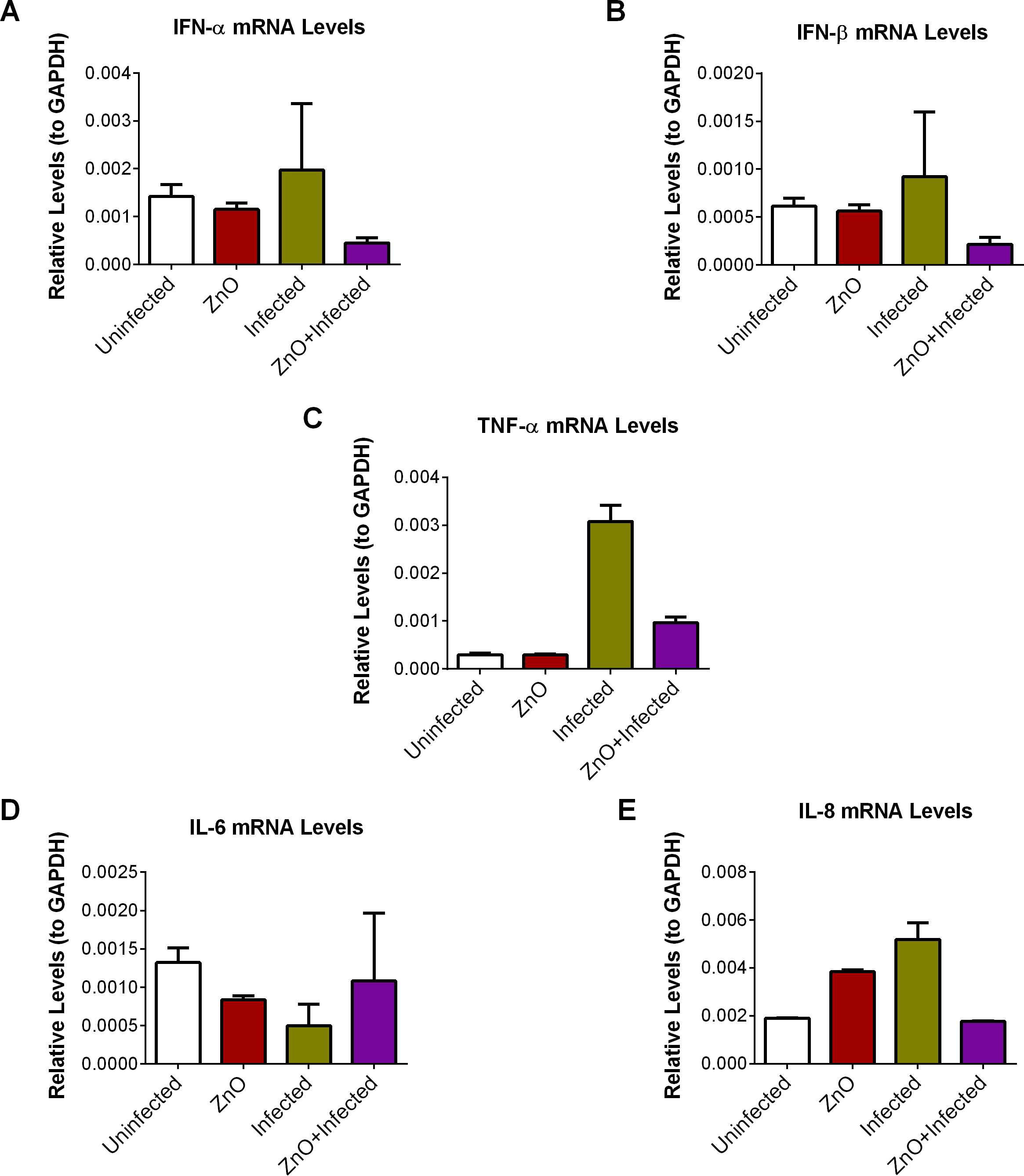 response mediators. Comparison in cytokine profile of uninfected, zinc oxide-treated uninfected, infected and zinc oxide-treated