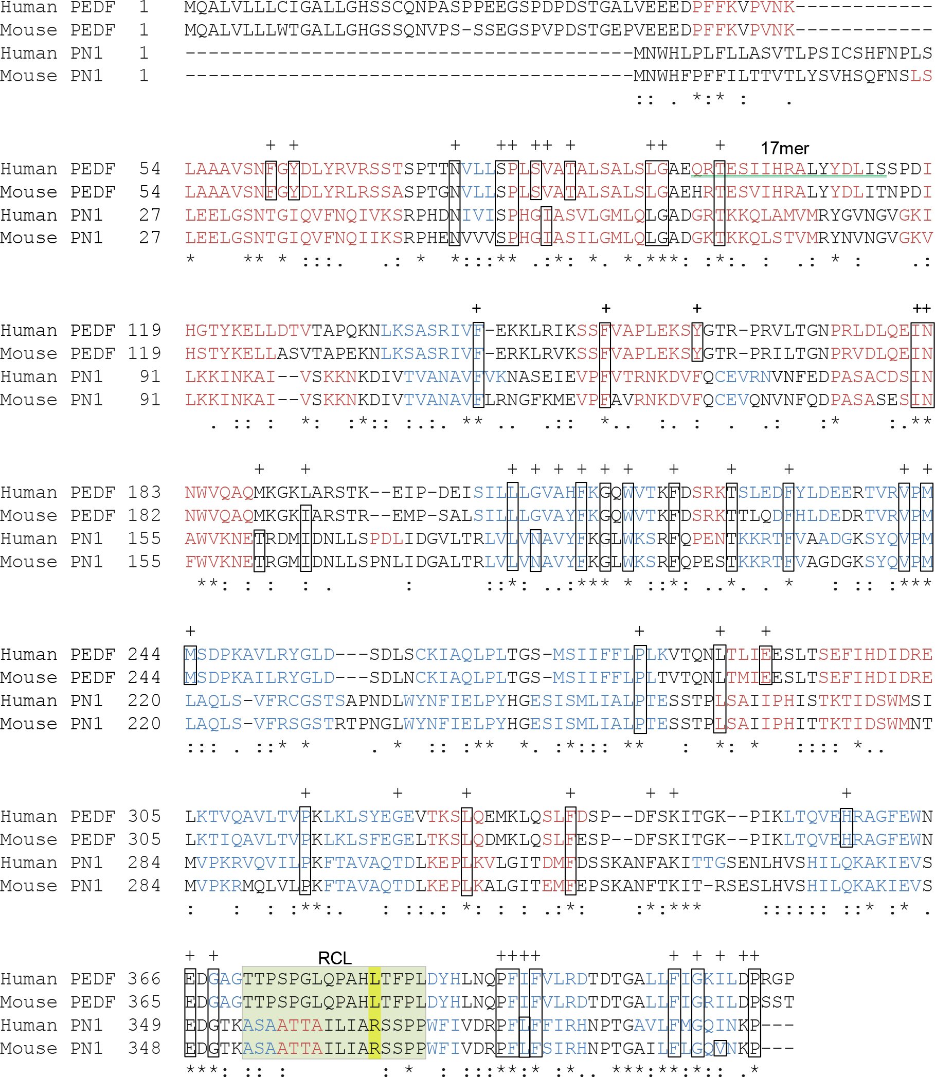 Figure 1. Primary sequence comparison of PN-1 and PEDF. The alignment performed using the