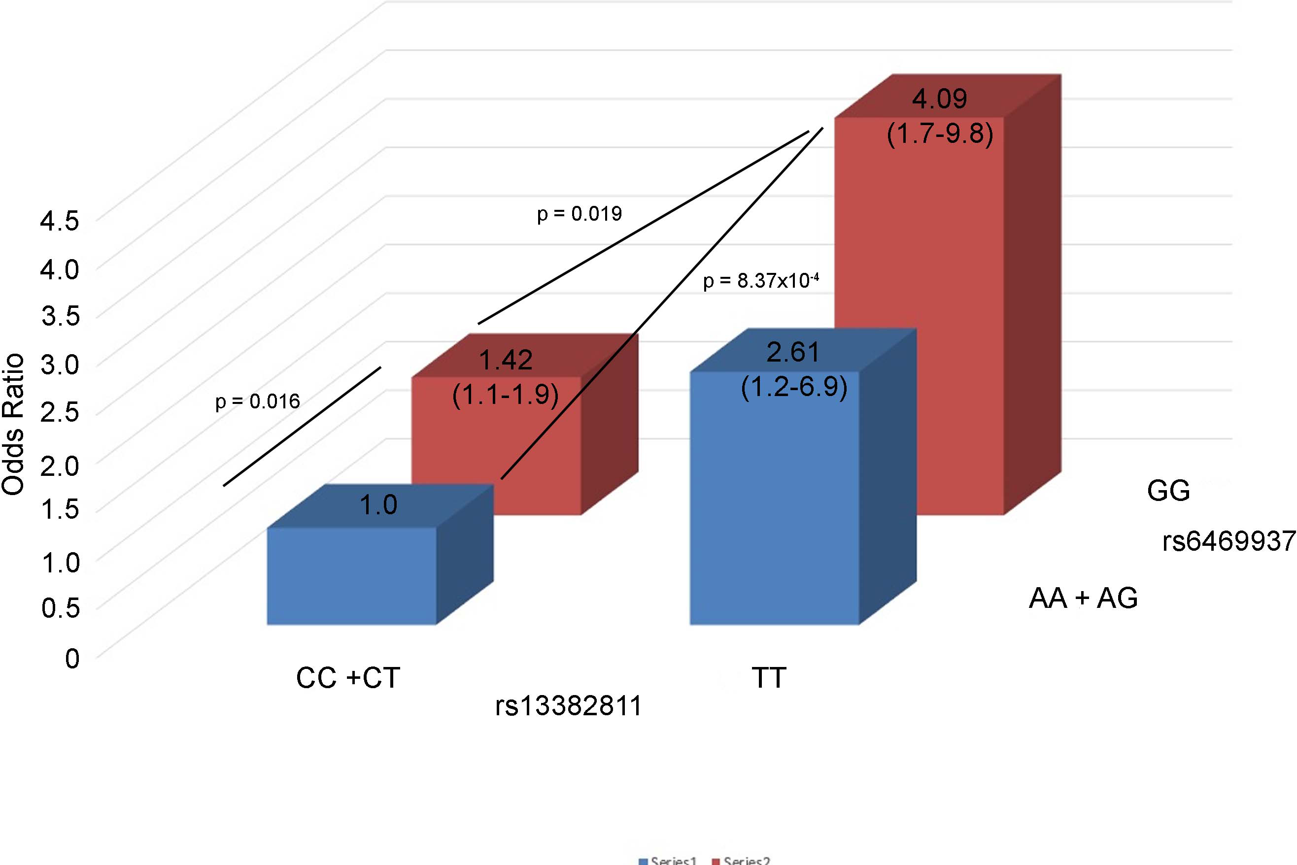 rs6469937 in a Han Chinese population under a recessive model. Individuals are grouped by the presence of the homozygous risk genotypes