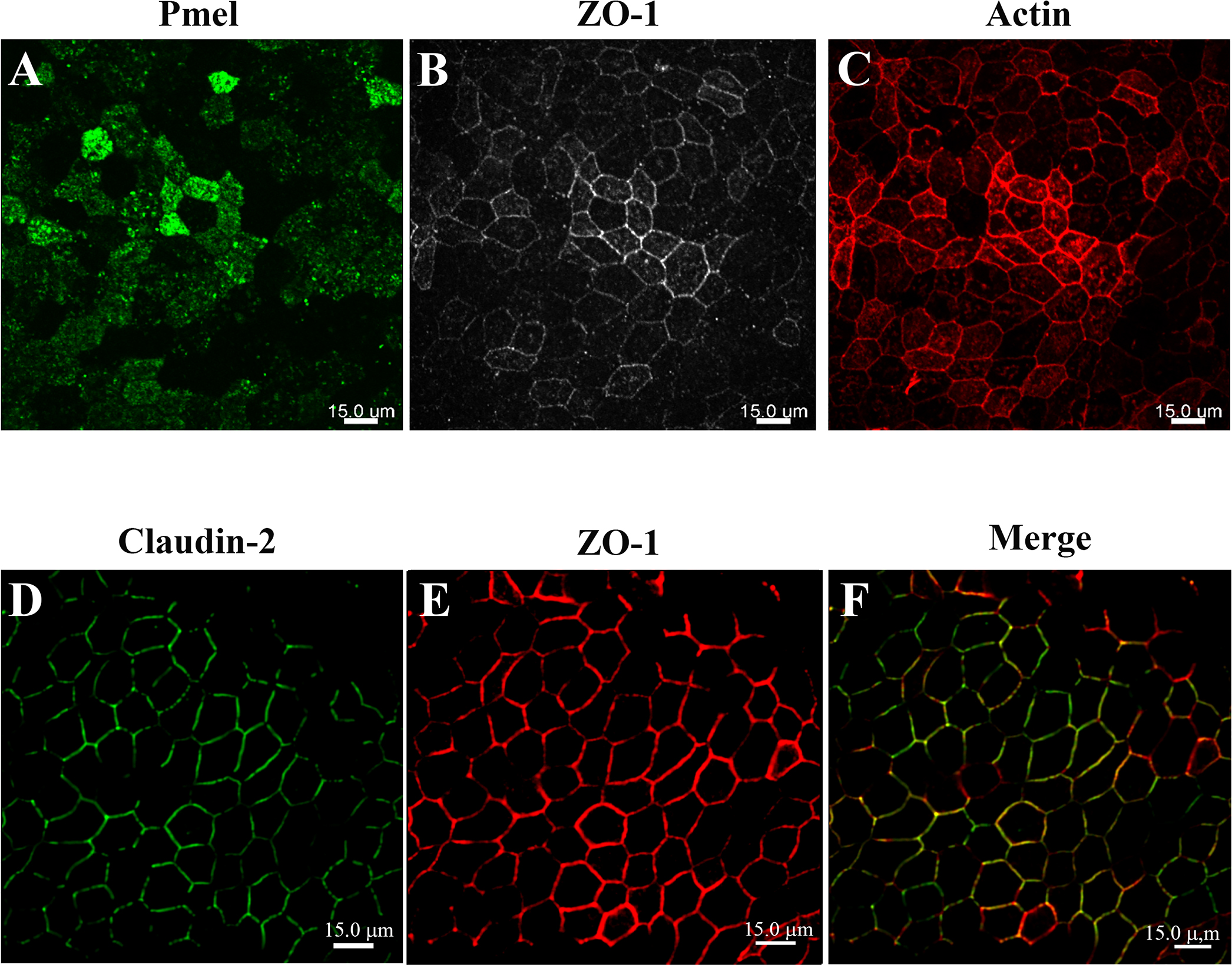 protein (PMEL), mouse anti-claudin-2 primary antibodies, and Alexa Fluor secondary antibodies were used to immunostain the