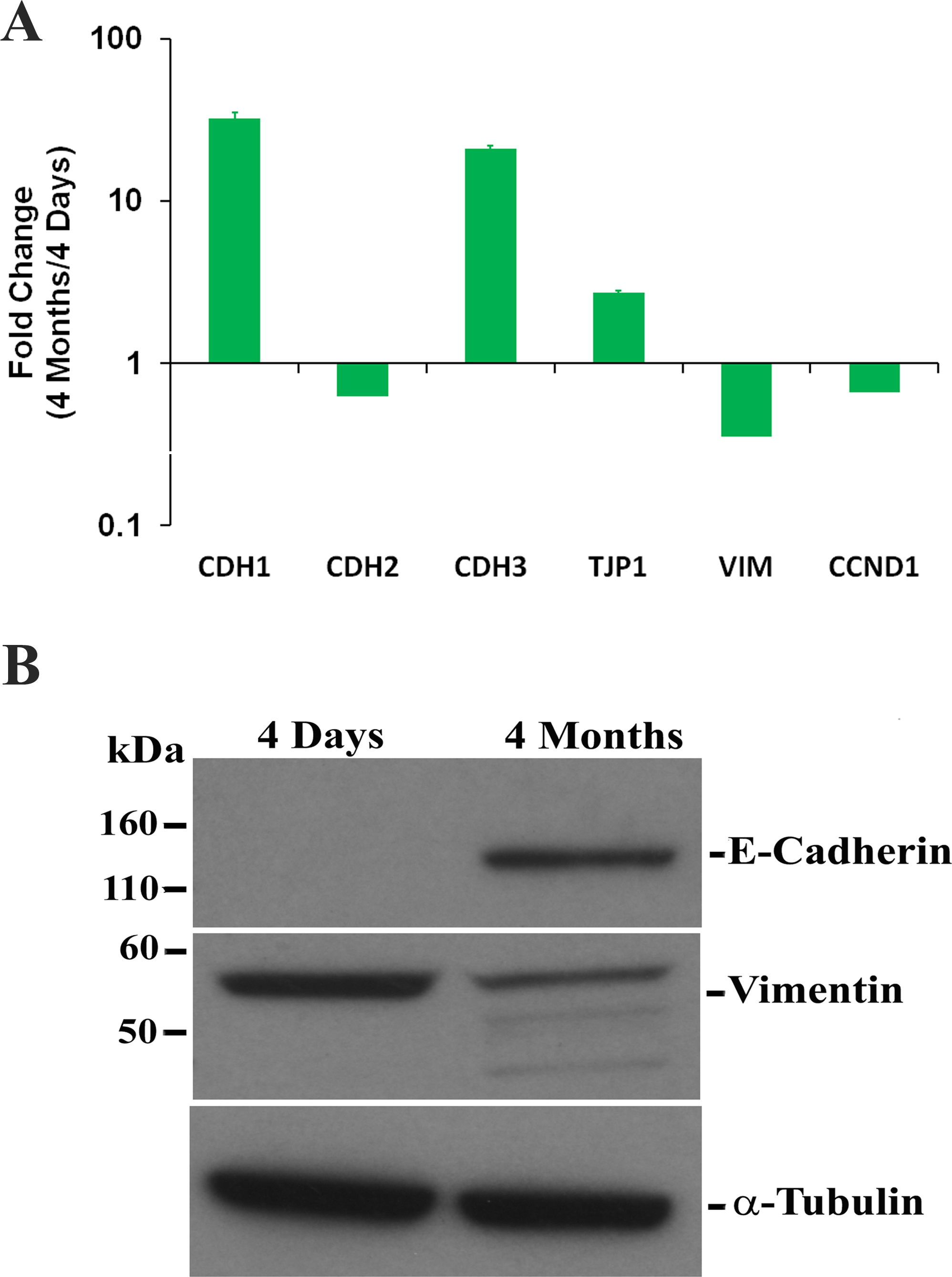 western blotting, respectively, as described in the Methods section. A: Real-time PCR analysis of epithelial- and mesenchymal-specific mRNA expression. The values are mean ± standard deviation