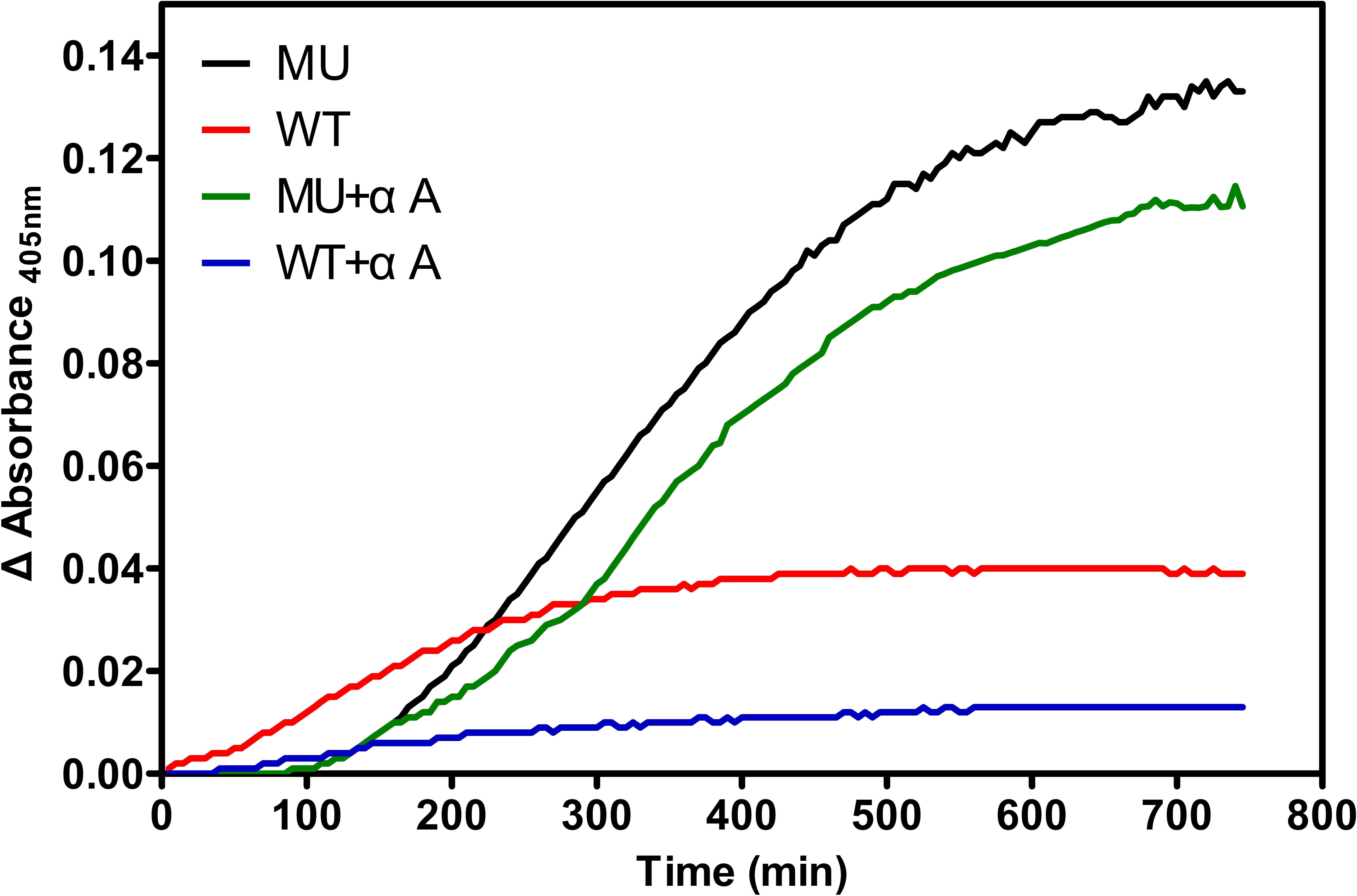 Figure 4. Thermal denaturation of WT and MU βB1 monomers and heteromers with αA-crystallin. Thermal denaturation curves were obtained