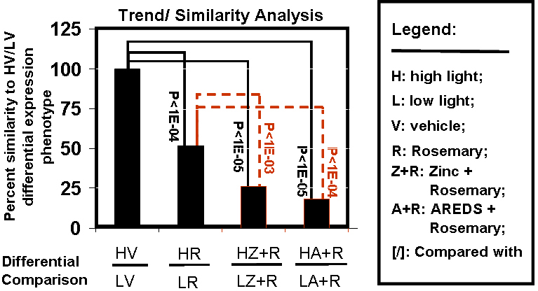 the percent similarities between the H/L antioxidant treatments, (HAO/LAO) comparisons with (HV/LV) to determine its statistical