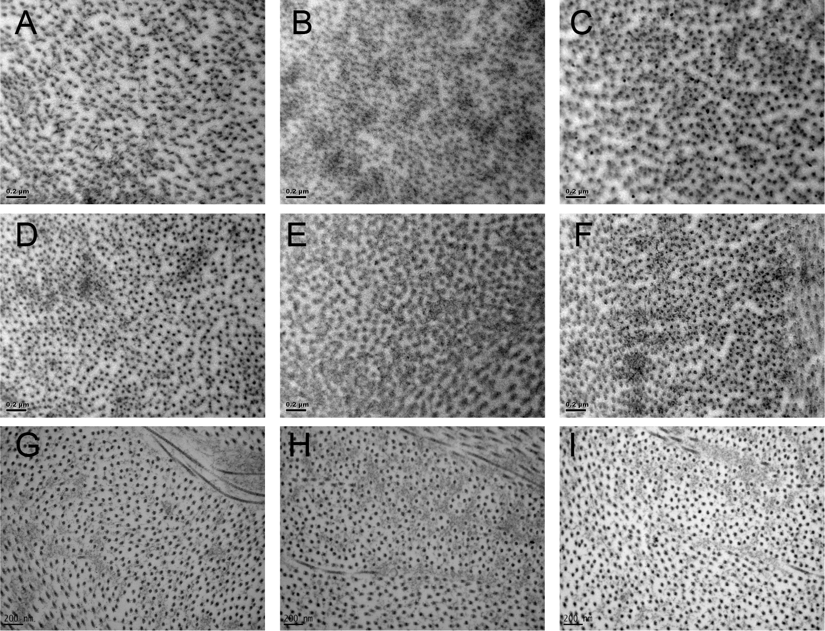 Transmission electron microscopy of the stromal lenticule showing transverse section of collagen fibrils following 4 weeks of storage (
